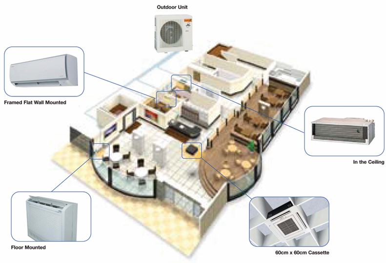 We provide Complete Solution Of VRF(VRV), Chiller, Duct table System general heating and air condition solution for all kinds of premises such as: Homes, Offices, Hotel, Commercial Complex, Shopping Center, Hospitals, Agriculture Products House, Clubs, Events hall, Banquet Hall, Factories and all kind of indoor public places.