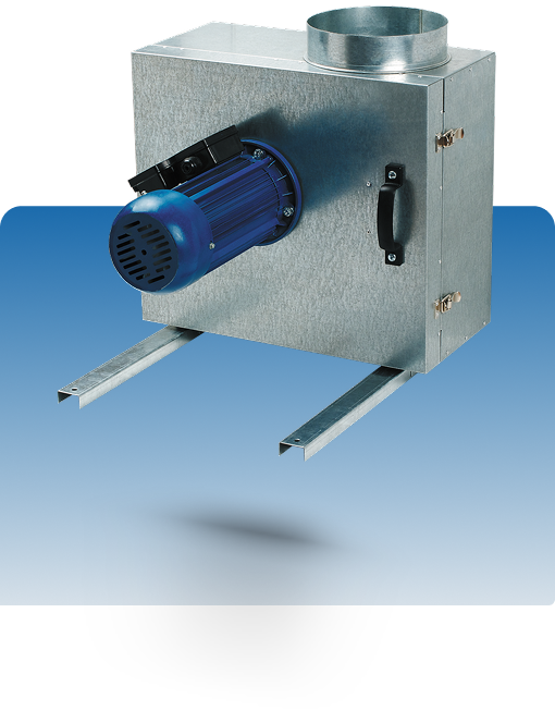 Kitchen inline fans in sound-insulated casing with operational temperature of 120 °C